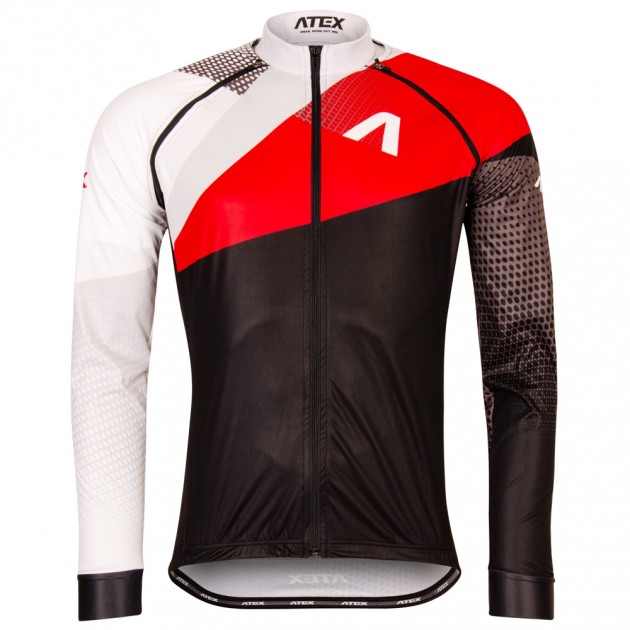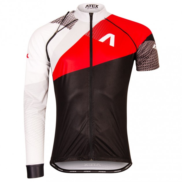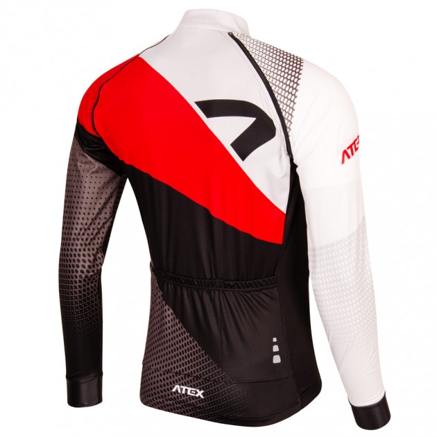 Full front zipper with backing, long zippered raglan sleeves finished with elastic cuff, short raglan sleeves finished with sewn-in elastic, bottom edge of jersey finished with silicone anti-slip elastic, three-piece back pocket with optional fourth zippered pocket. Reflective elements.