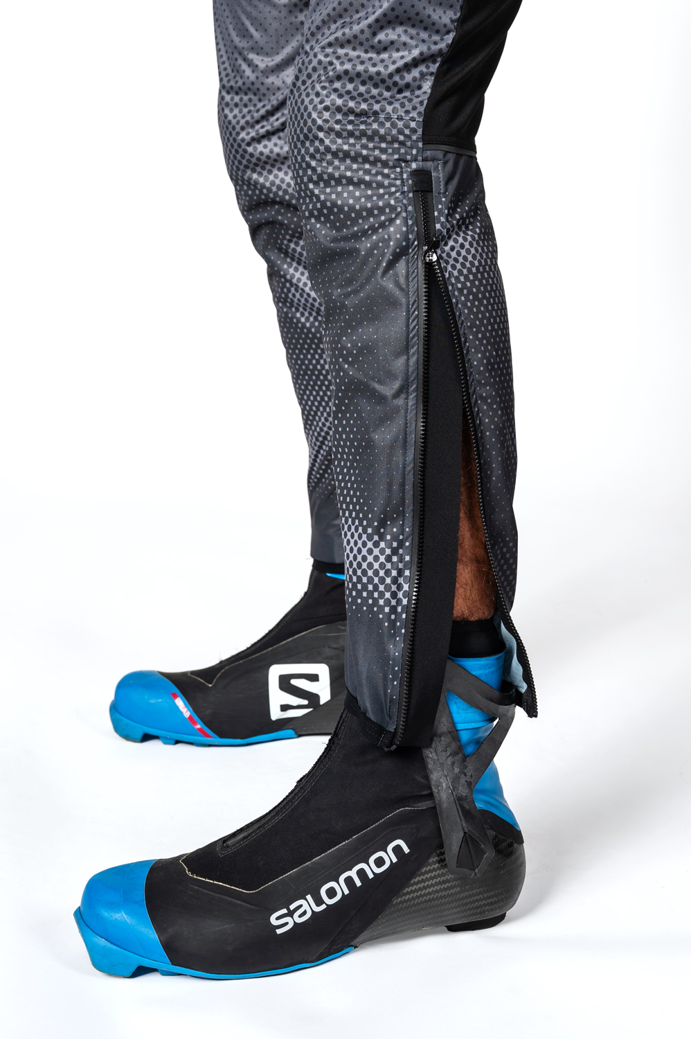 The ELITE long cross-country trousers have a semi-fitted anatomically shaped cut. There is an elasticated waistband with a drawstring and two zipped pockets with stop sliders on the front. The legs have waterproof lined zippers to below the knee, allowing for easy dressing over boots. The lower edges of the legs are finished with a hemming elastic. There are distinctive reflective elements on the back.