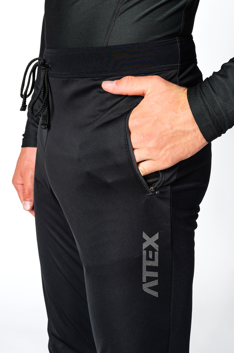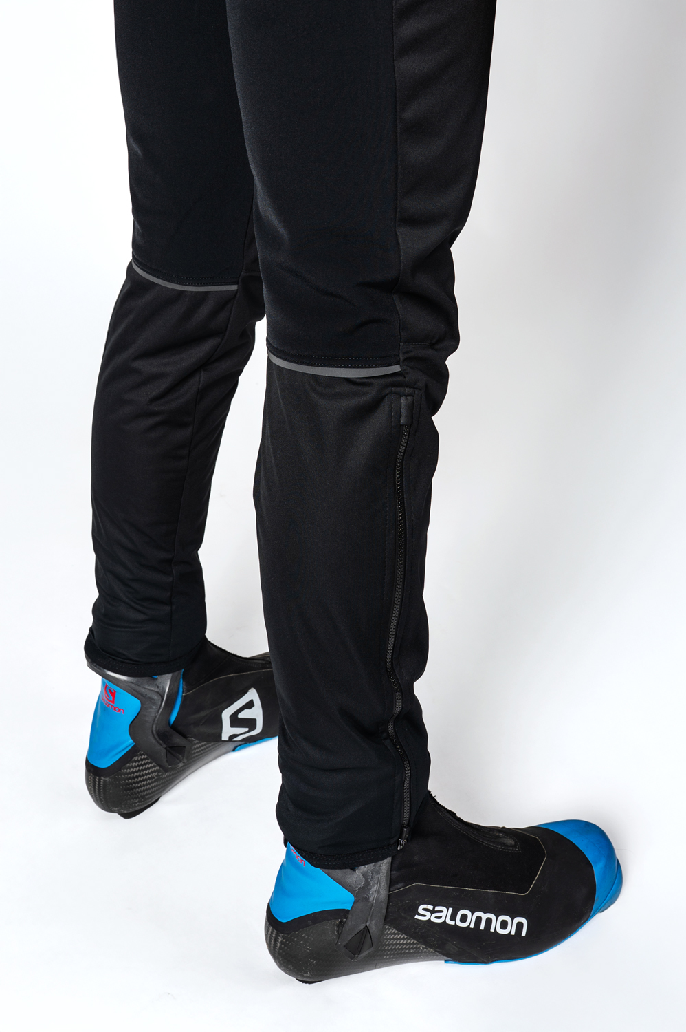The SPORT long cross-country trousers have a semi-fitted anatomically shaped cut. There is an elasticated waistband with a drawstring and two zipped pockets with stop sliders on the front. The legs have waterproof lined zippers to below the knee, allowing for easy dressing over shoes. The lower edges of the legs are finished with a hemming elastic. There are distinctive reflective elements on the back.