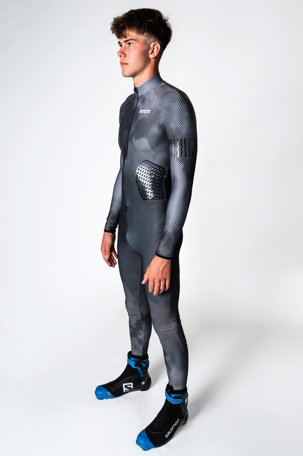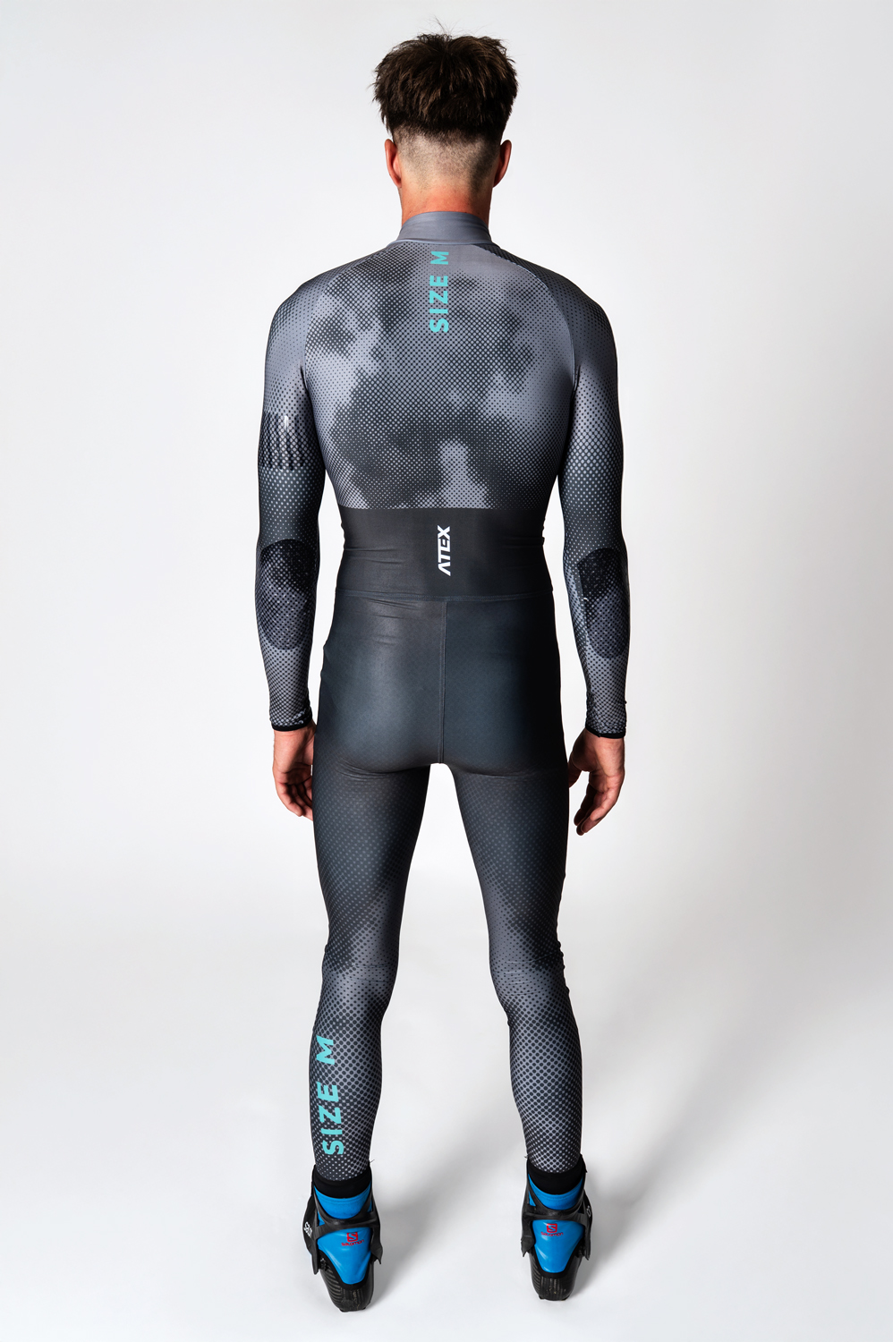 The one-piece biathlon suit PROFI has a close-fitting and anatomically shaped cut. The stand is lined with a stretchy warm material, there is a two-thirds lined zipper with a cover on the front, there is a short covered zipper in the trouser section and the knee area is lined and reinforced. The lower edge of the sleeves and legs is finished with a hemming elastic. The suit includes non-slip biathlon grips for increased stability when handling the weapon, on the biceps, side and both elbows.