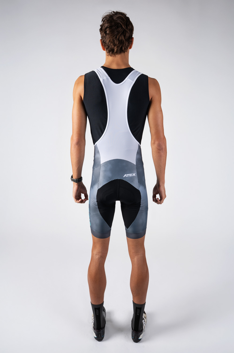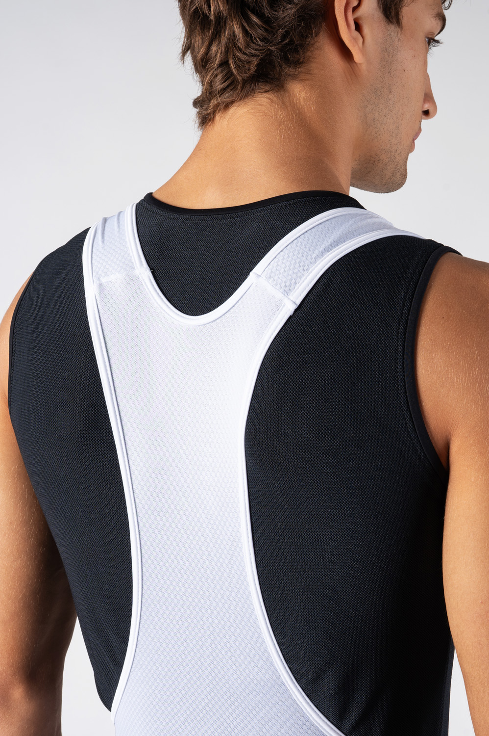 The base of the shorts is made up of a very stretchy and smooth ESPAN material, which contributes to the overall comfort and supports the rider's aerodynamic profile. The braces and back laclo are made of fast-drying MESH CUBE mesh material, which ensures high breathability and effective sweat wicking.