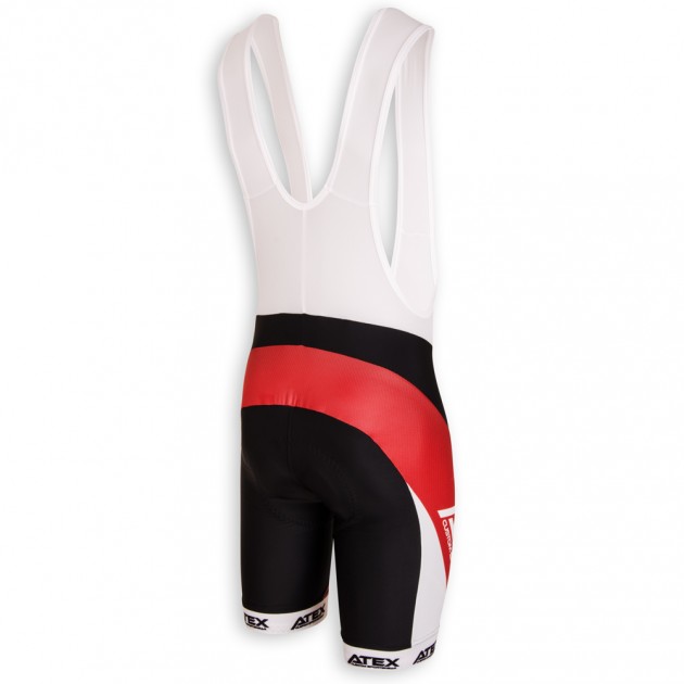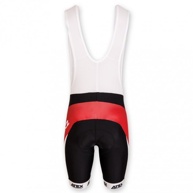 The short cycling trousers with suspenders and wide elastic contain in the basic version suspenders made of mesh material and a high quality profi lining. The trousers are finished with a wide silicone elastic band with the option of printing. The printed horseshoe is made of one piece, without seams. Option of reflective element. On request we can also print the areas shown in the picture in grey.