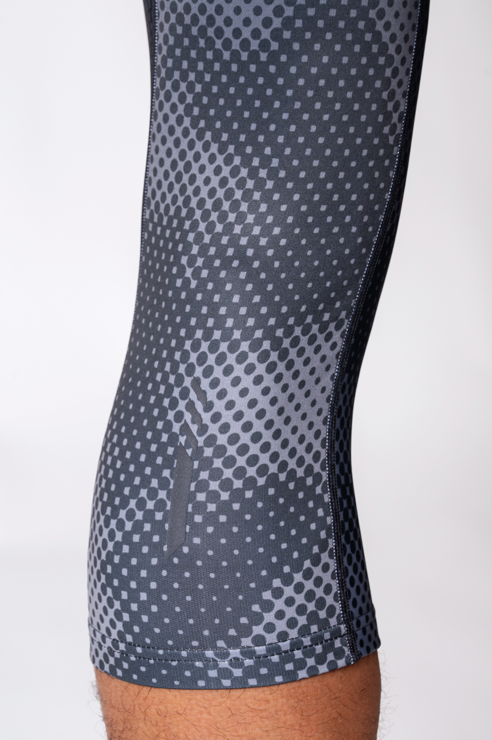 Extended knee sleeves have an anatomically shaped fit that naturally adapts to the shape of the leg in motion. The upper part is extended to the upper thigh and finished with non-slip silicone rubber to ensure a stable fit while riding. Flatlock seams minimize pressure and friction, enhancing wearing comfort. There are also distinctive reflective elements for better visibility in low-light conditions.