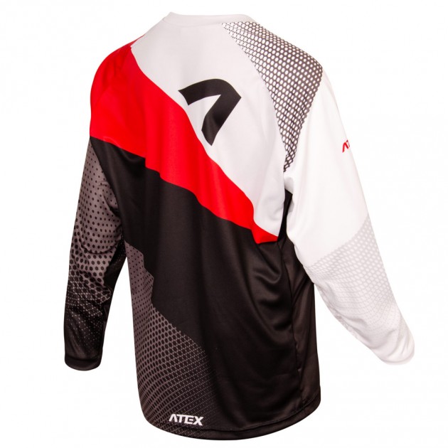 The jersey has a V-neckline, long raglan sleeves with a narrow cuff and elasticated side panels. The bottom edge of the jersey is curved without elastic.