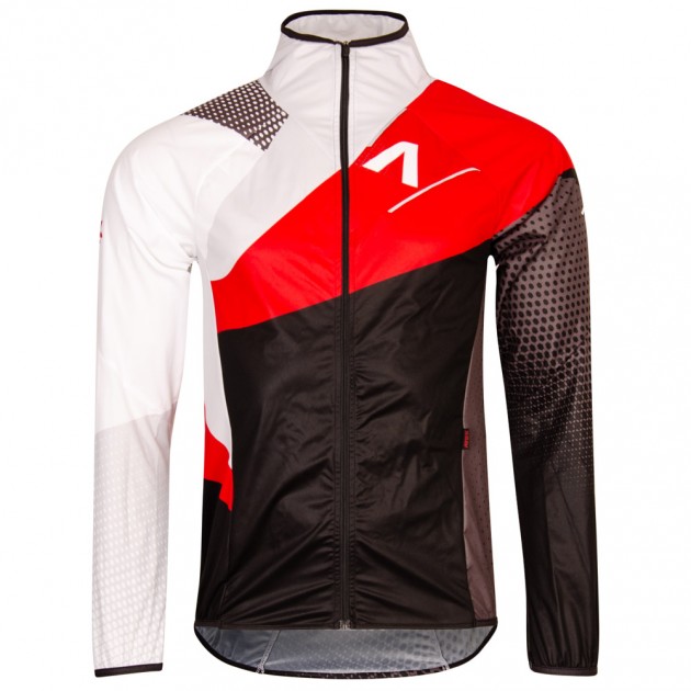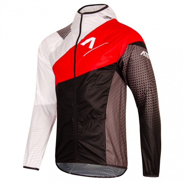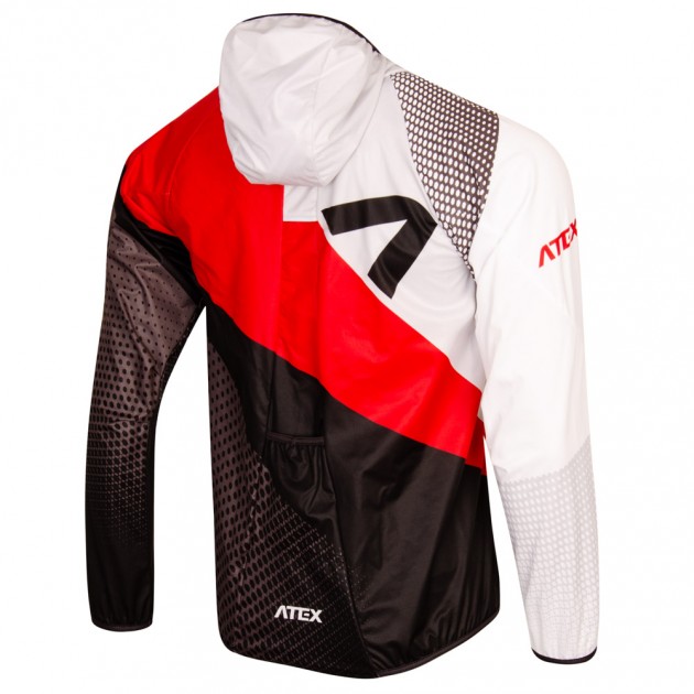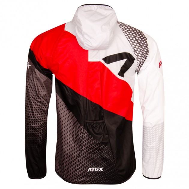 The jacket has a specially shaped hood with an elasticated hem, which stays perfectly on the head even in strong winds and does not get in the way behind the neck when loose. There is a full zipper with lock system on the front, anatomically shaped raglan sleeves are finished with an elastic hem, a small pocket on the back, the bottom edge of the jacket has elastic parts on the sides. Reflective elements increase visibility in low light conditions.