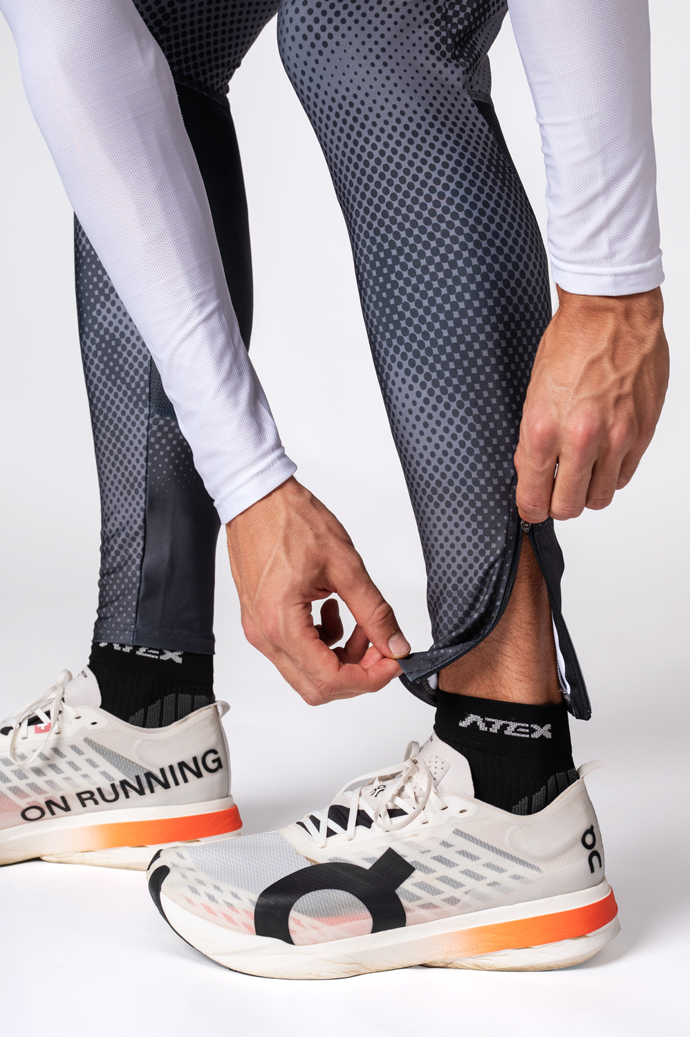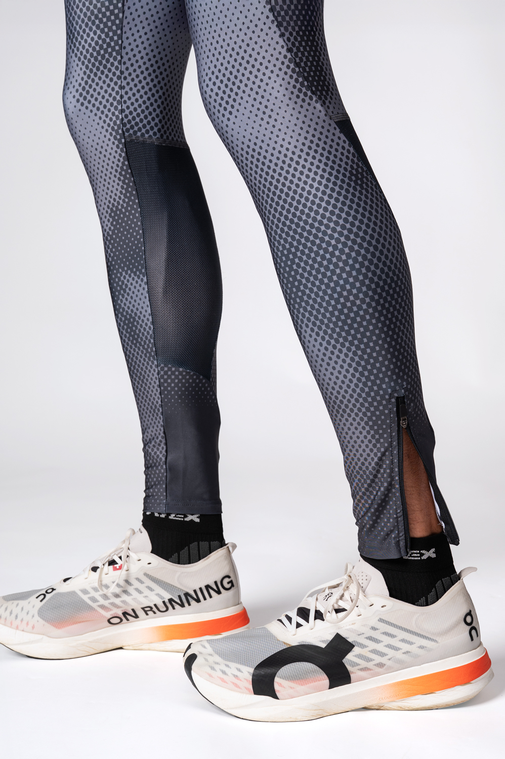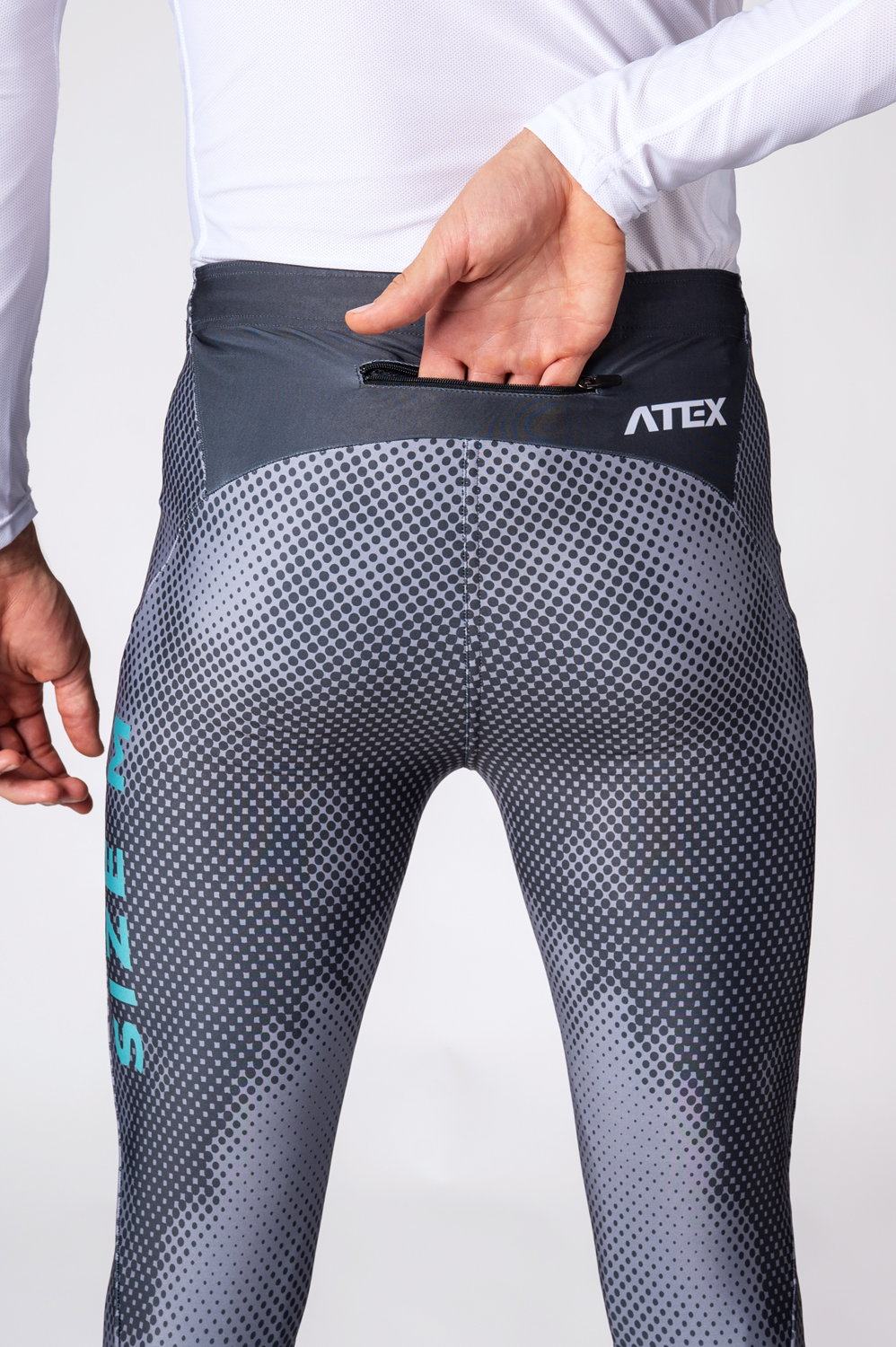 Optional short zippers at the bottom of the legs, a waistband with a zipped pocket made of MESH material or reflective elements. On request, we can also print some of the areas shown in the picture in grey.