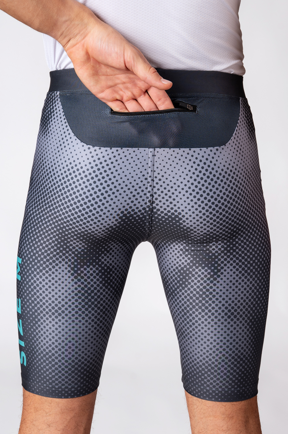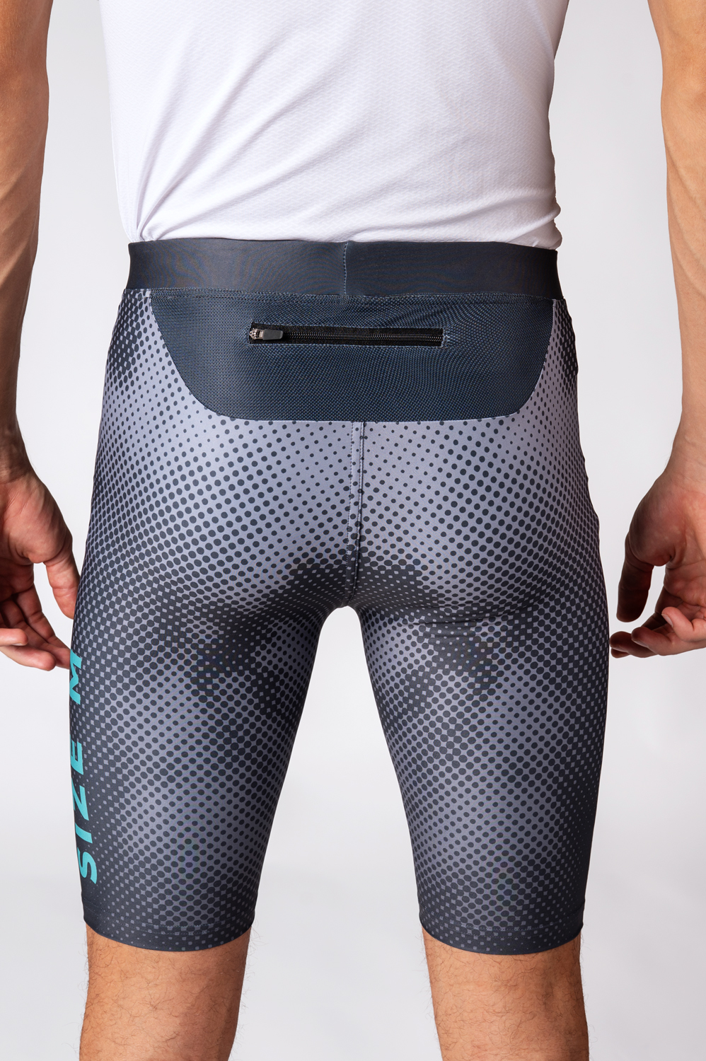 The shorts have an anatomically shaped cut that adapts perfectly to the body. The waistband has a soft, comfortable elastic. The handy back zip pocket serves well for your small items such as keys, phone and more.