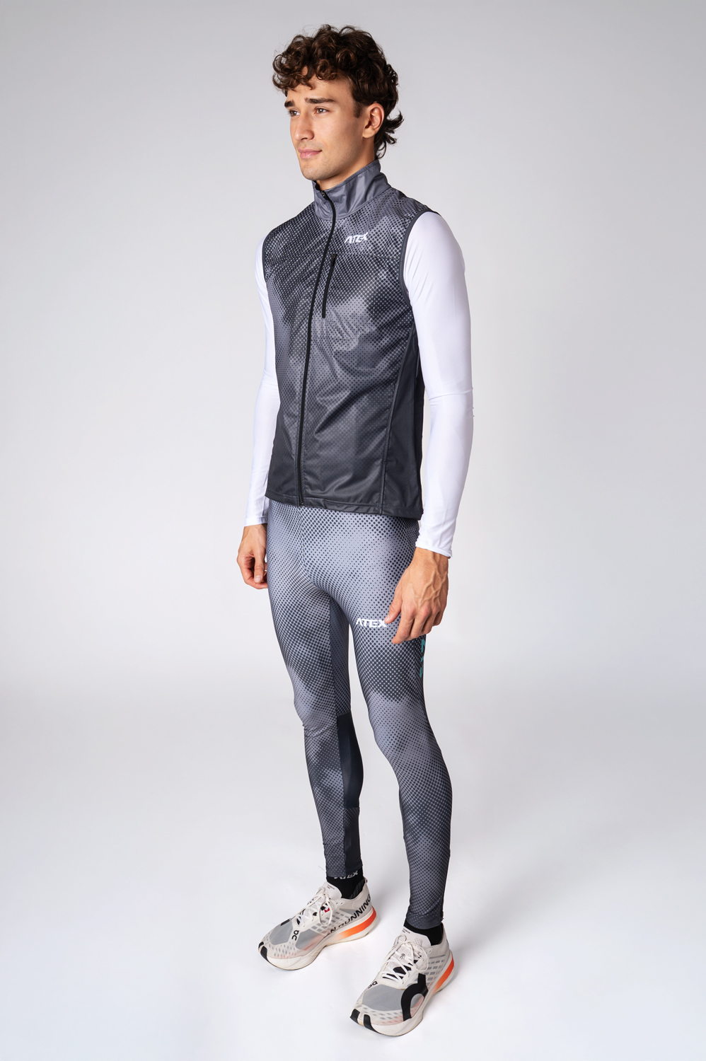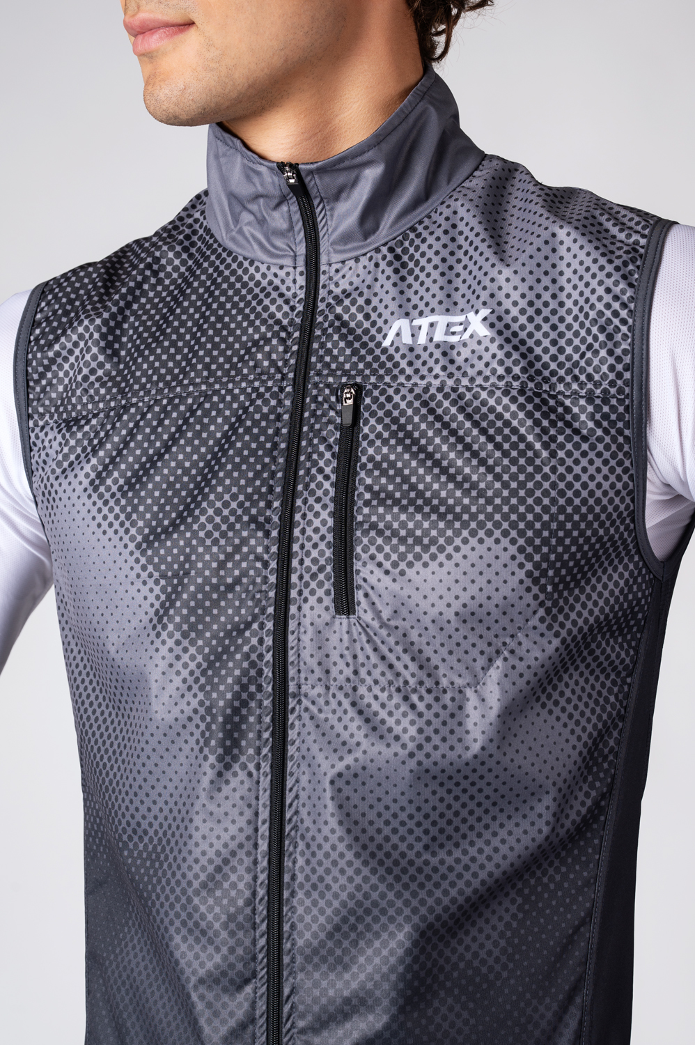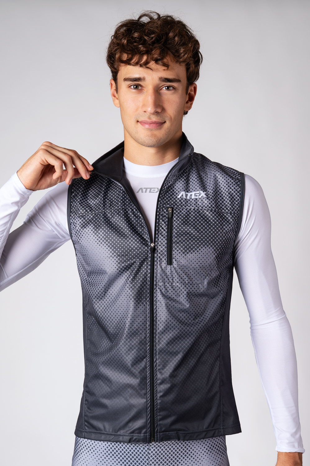 The vest is made in a combination of two materials. The main parts are WINDPROOF SOFT - an extremely lightweight three-layer membrane material with high resistance to wind and moisture, while maintaining good breathability. The side and underfoot sections on the back are made of RUDY, which is lightweight, comfortable, breathable and quick-drying, with a fine square and small perforated structure.