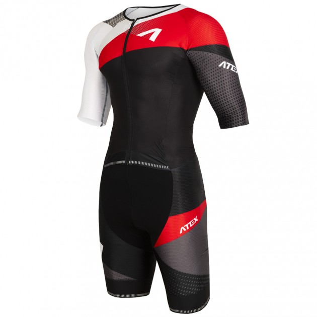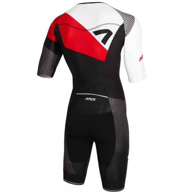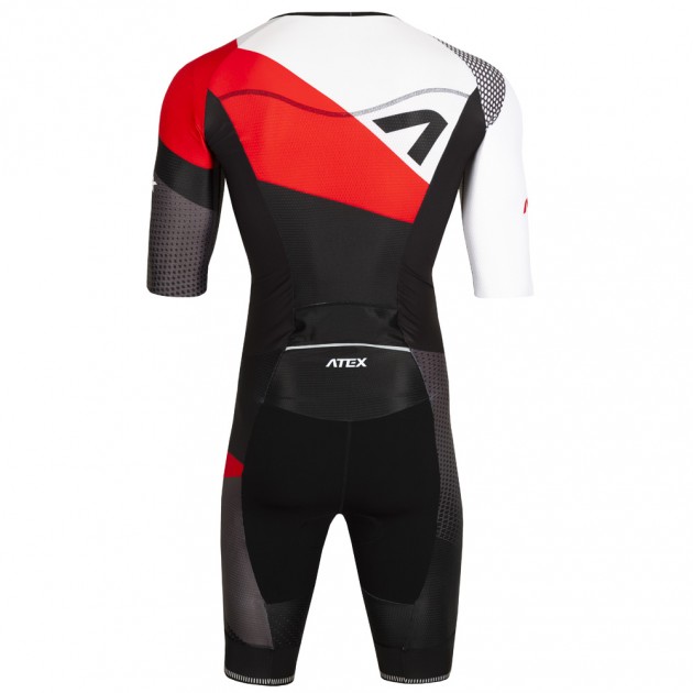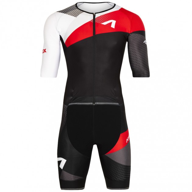 The base of the upper part of the suit is made of a very flexible, light and soft Fitex material. The raglan sleeves and centre back panel are made of aerodynamic, slightly compressive Velaro material, which features a special knit construction for faster ventilation and air circulation. The lower part of the suit features a combination of Velaro material on the main side panels of the legs and the extremely quick-drying Tritech material in the centre section of the trousers.