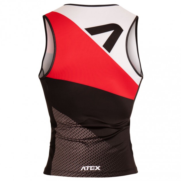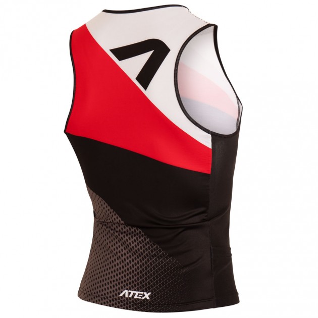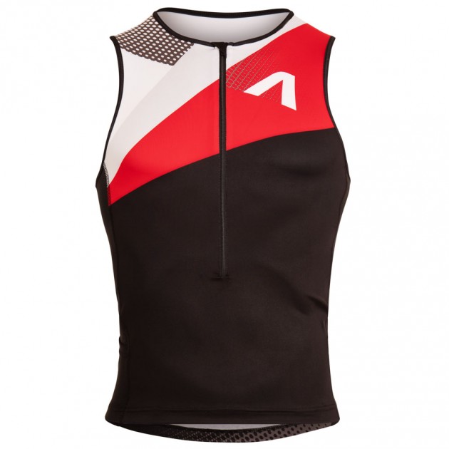 Triathlon top with side pockets has a close fit.