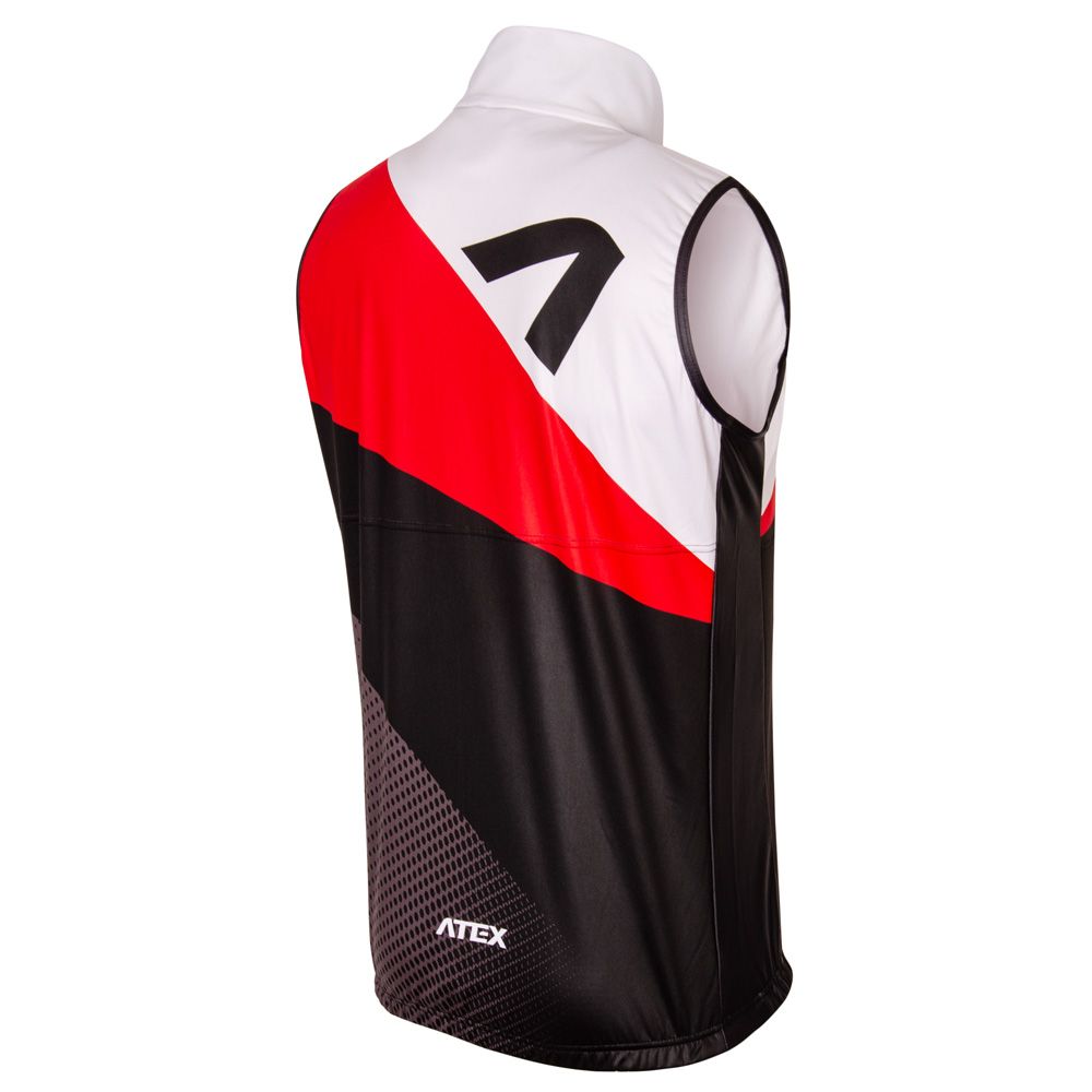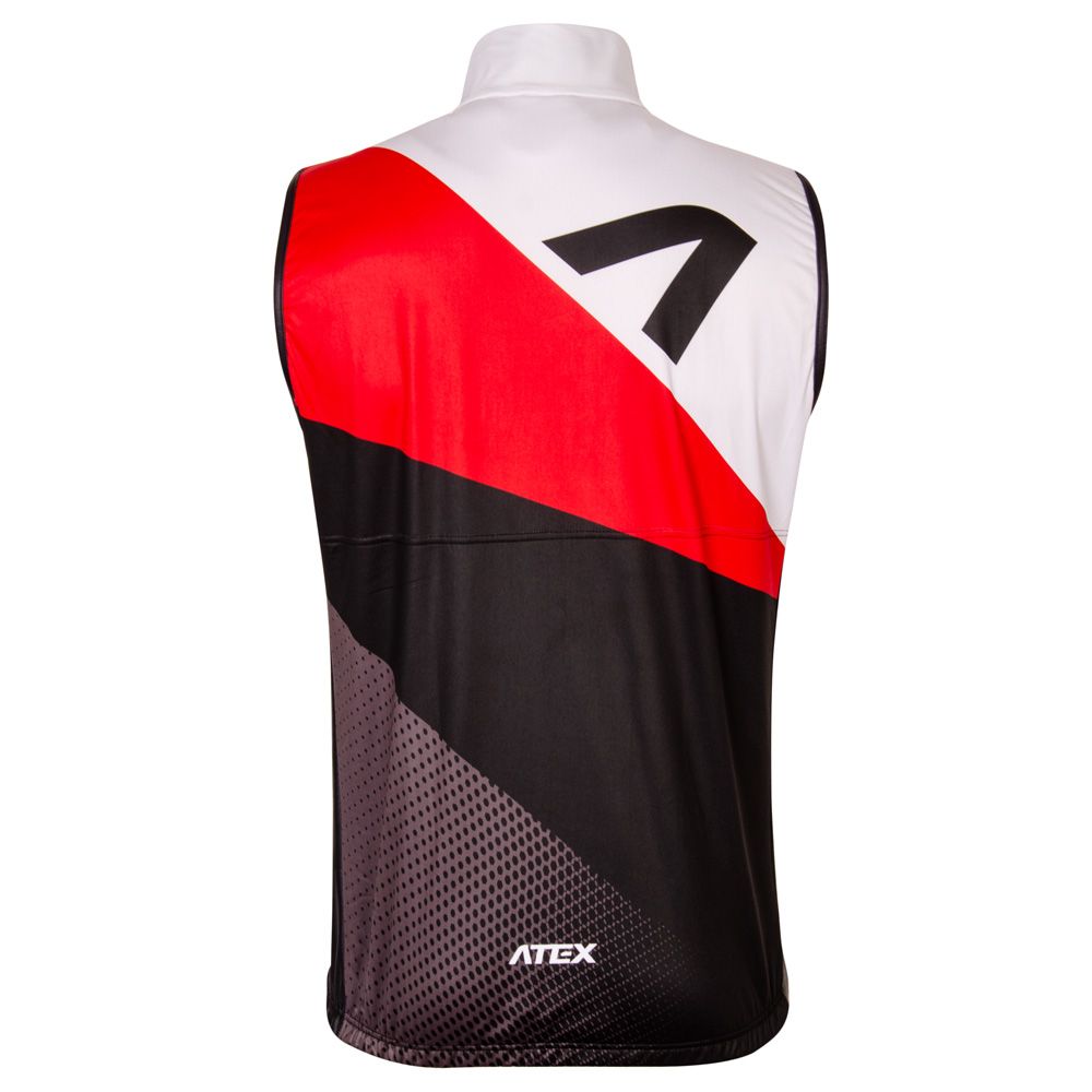 On the front part there is a zipper about 30 cm long with a stop slider, the armholes are lined with soft elastic material. The back is extended and the bottom edge of the vest is finished with silicone anti-slip rubber, which holds the vest securely in place even during intense movement.