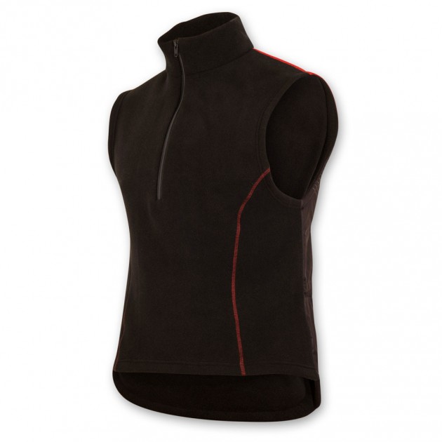 The vest is made of a combination of two functional materials - the base is a soft, warm FLEECE material, while the back is reinforced with a layer of WINDPROOF SOFT membrane material that is wind and moisture resistant.