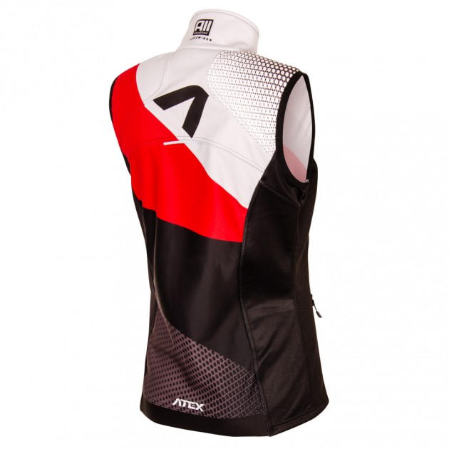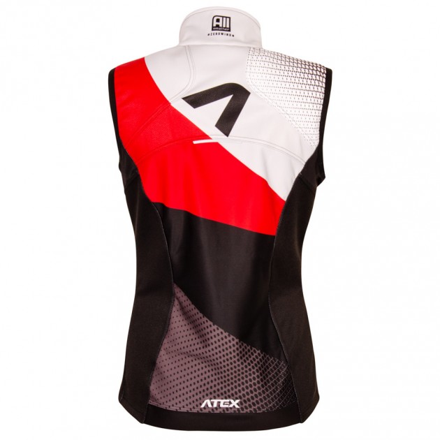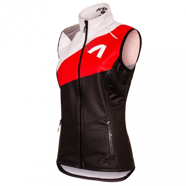 The women's running vest has a close-fitting, distinctly fitted, feminine cut and is made in a combination of two materials. The main parts of the vest are made of the lightweight, wind and moisture-resistant three-layer Zerowind membrane material (Light or Thermo). The centre back and underarm panels are made from a very stretchy, soft Roubaix material for increased breathability and better range of movement. The vest has an anatomically shaped fit. The stand is raised in the back and lightened with a soft, quick-drying material in the reverse. The front has a full-length waterproof zipper with caps on both sides and two zippered pockets. The armholes are lined with elasticated hem. The lower edge of the vest is without elastic and does not stretch at the sides, only the middle part of the back part contains an elastic anti-slip strip at the bottom edge against sliding out when running. There are distinctive reflective elements on the front and back. The cut of the vest is designed as a close-fitting running vest over a racing jersey. If layering multiple warmer layers is needed, we recommend choosing a larger size.