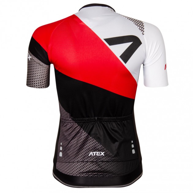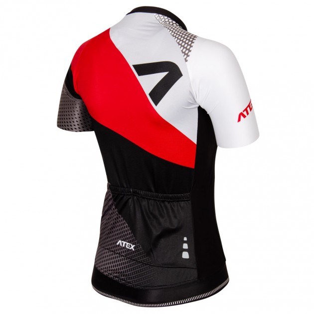 The women's cycling jersey has a very close fitting, feminine shaped pro plus cut and is made from Rudy material, combined with Fitex material on the sides and sleeves for added comfort and body contouring. The jersey has a long full-length zipper with stop slider on the front, a very low stand-up collar at the neck, raglan sleeves with a clean-cut finish with no further digging in at the bottom, a three-piece pocket with reflective element on the back, the bottom edge of the jersey is finished with a 4 cm wide soft non-slip elastic with reflective elements all around.