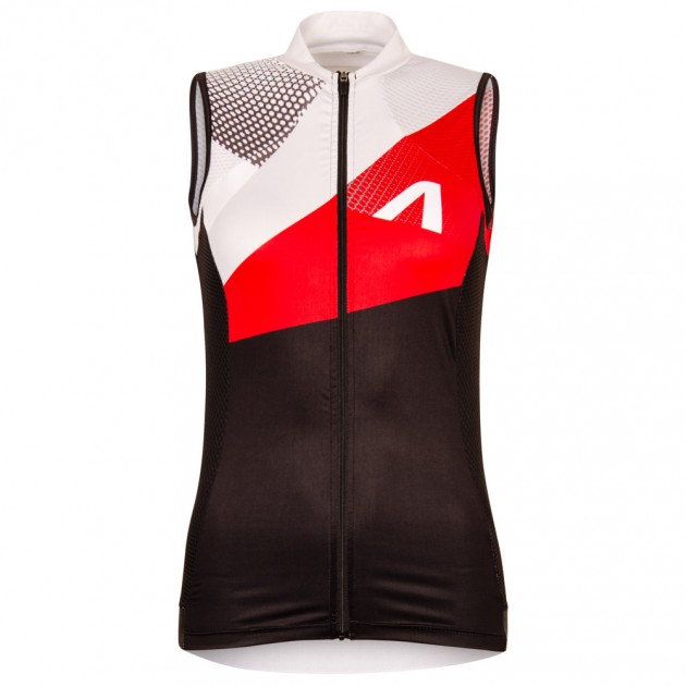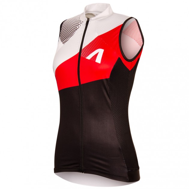 Women's sleeveless cycling jersey is a close-fitting feminine cut.