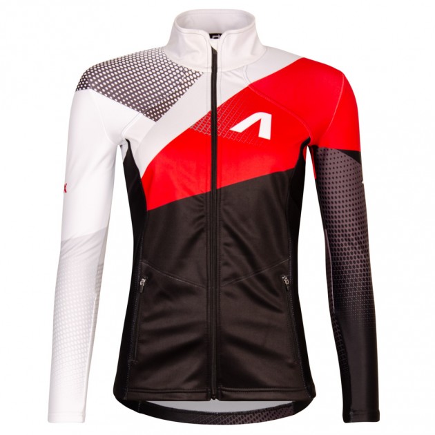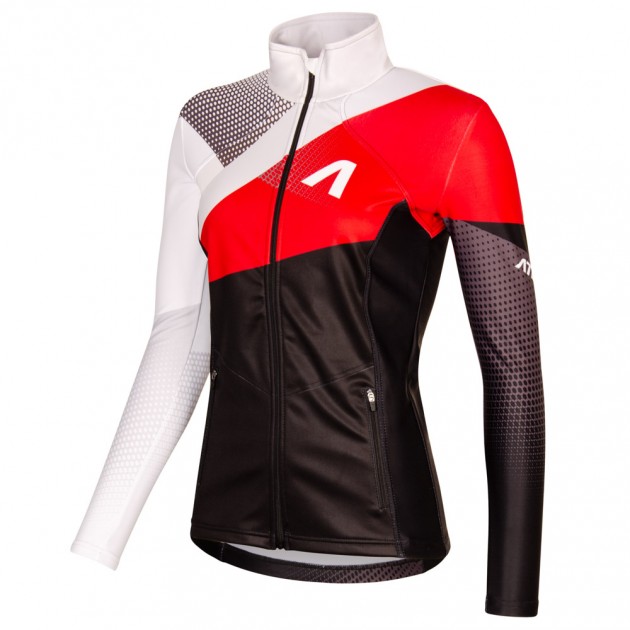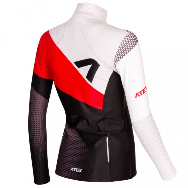 The women's sports sweatshirt has a close-fitting, feminine cut and is made in a combination of warm and membrane materials.