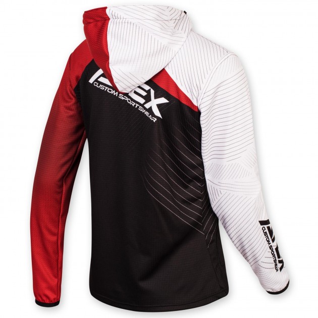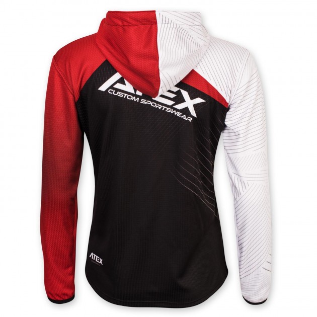 Lightweight women's sports sweatshirt with a semi-fitted fit has a lined hood with a drawstring hood, a full front zipper and two zipper pockets, set-in sleeves finished with elastic and a bottom edge of the sweatshirt that does not stretch on the sides. Reflective elements on request.