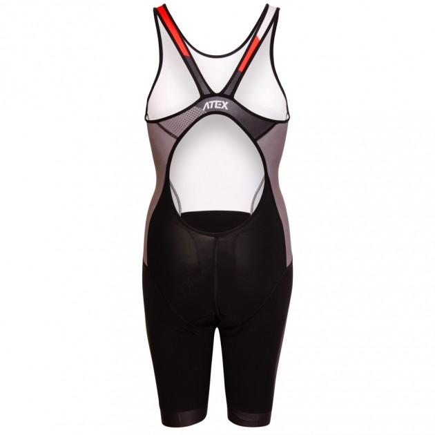 The women's triathlon suit is made of the revolutionary Tritech quick-drying material and was developed in cooperation with Czech top triathletes. The suit uses glued seam technology, which promotes greater functionality of the materials used. The suit is cut with many swimsuit features. The shoulder straps, the way they are attached, the large round neckline on the back and the specific leg fitting create optimal functionality and the required strength during the alternation of individual sports disciplines. The overalls have short legs with glued wide non-slip elastic. The top and bottom of the front are doubled to reduce translucency and increase strength. Seams are flat. The armholes, shoulder straps and back opening are lined with a stretchy, water-resistant hem. The suit has a standard sewn-in triathlon lining.